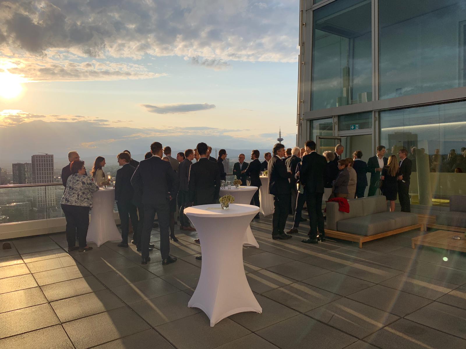 Im Anschluss get together auf der Terrasse des NEXTOWERs mit Drinks und Fingerfood (bei schlechtem Wetter in der Lounge)